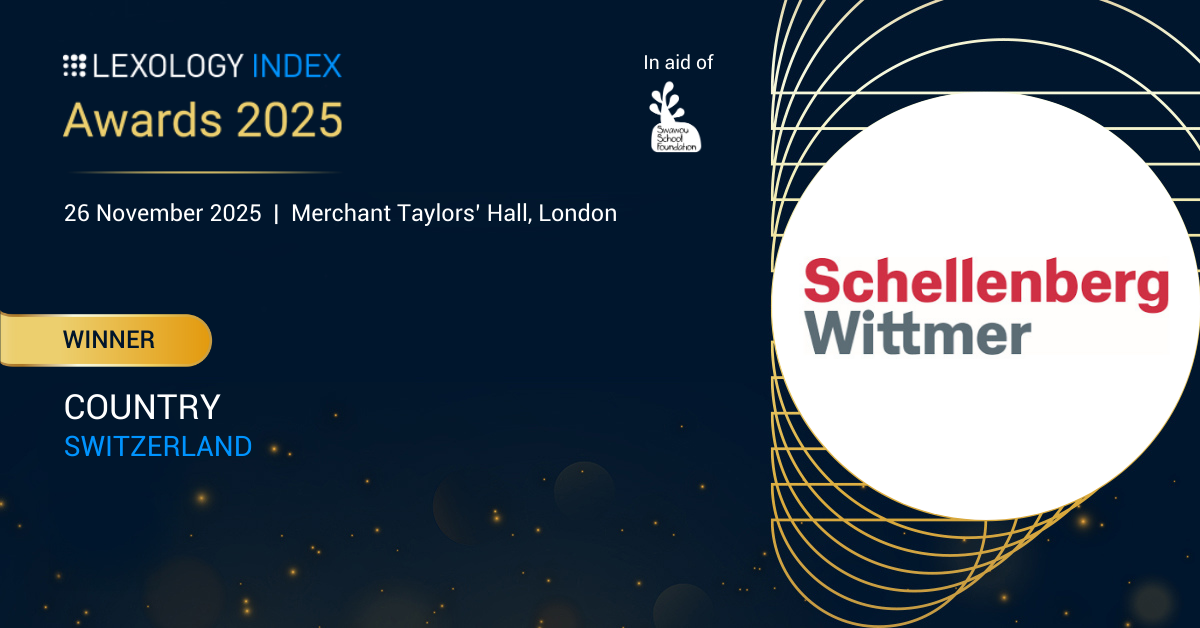 Schellenberg Wittmer has been awarded for the second consecutive time the Switzerland Firm of the Year at the Lexology Index Awards 2025, held in London.